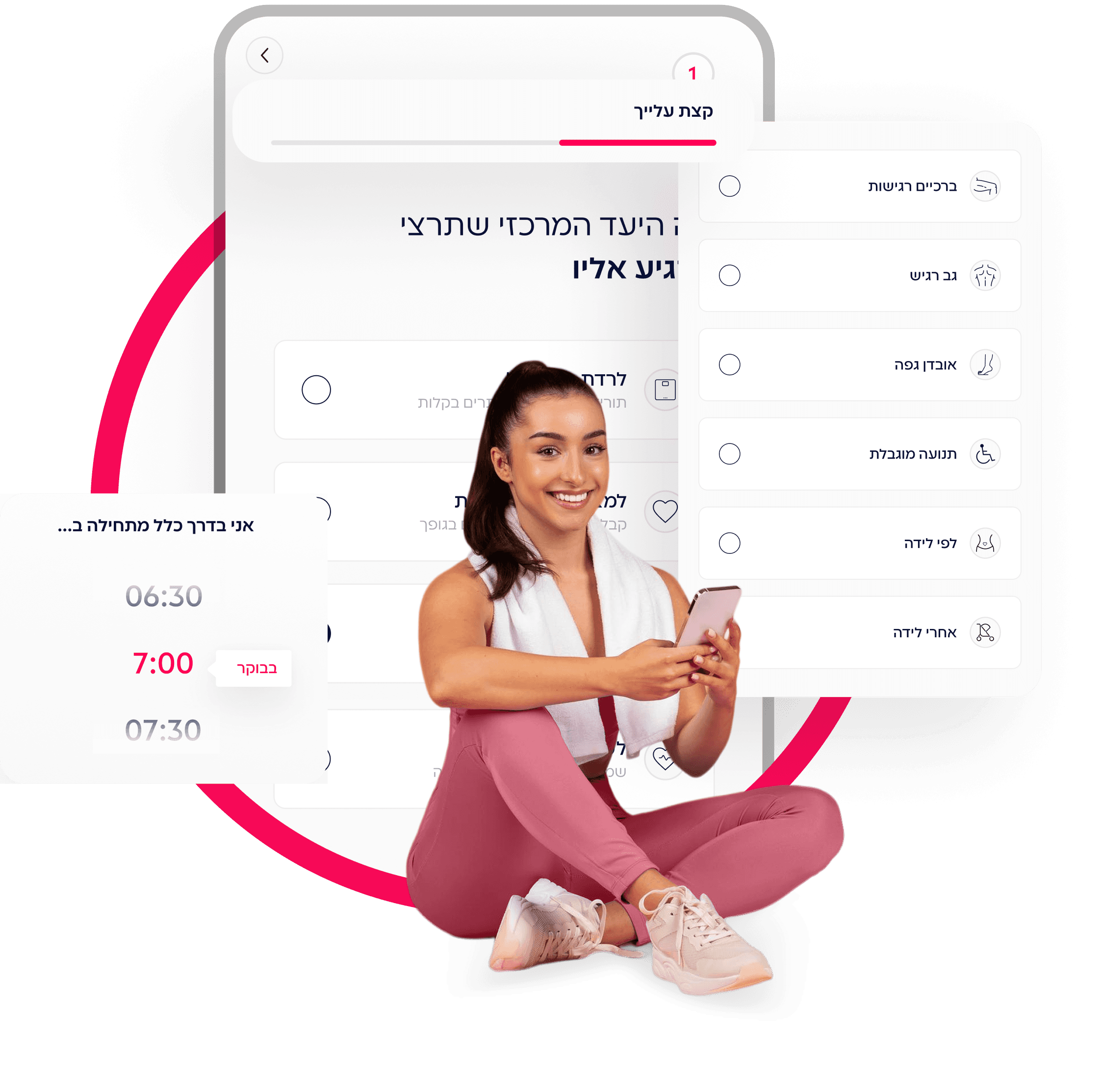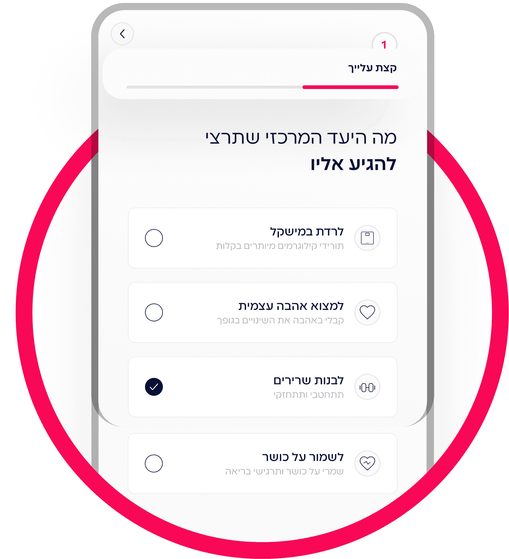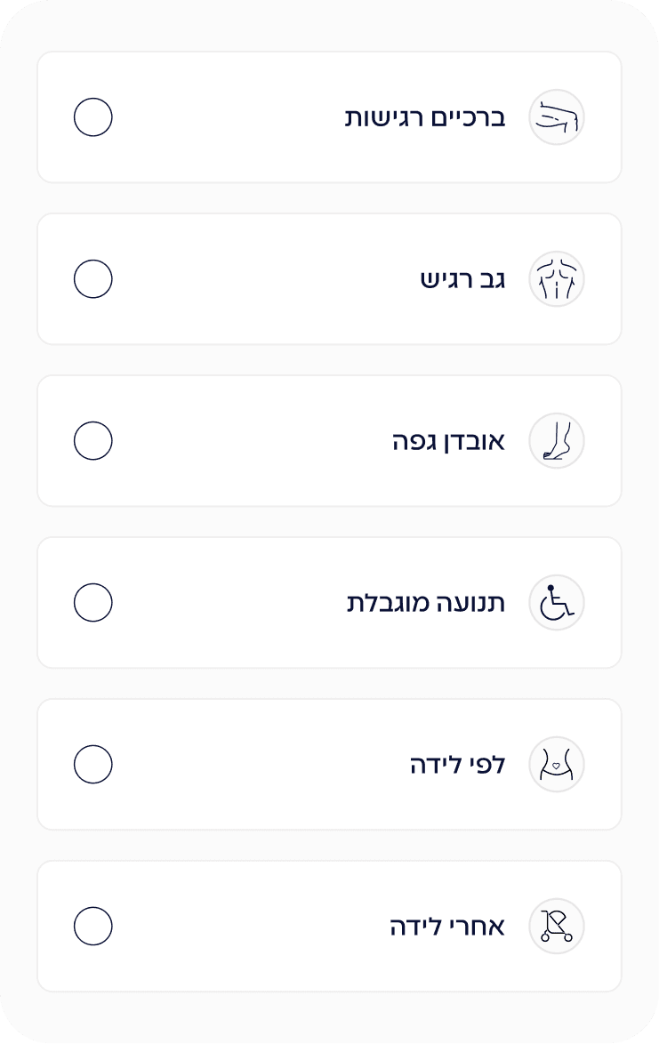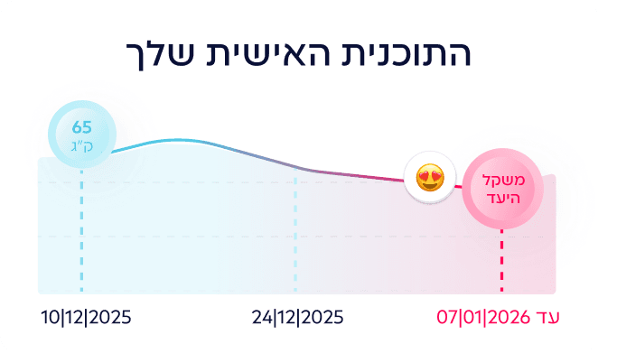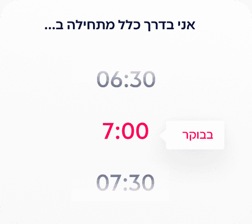 שאלון עומק קצר שמבין את המטרות, האילוצים וההעדפות שלך. ומתאים את האפליקציה בדיוק אלייך להעדפות שלך ולמי שאת.